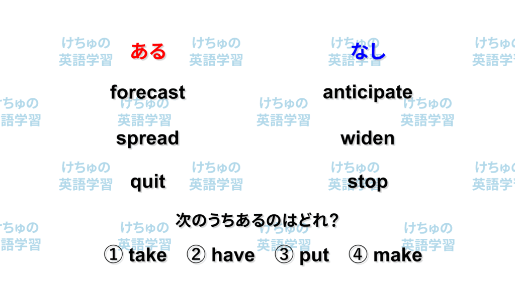 答えは③ put です。ある方に共通するルールを見つけていきましょう。